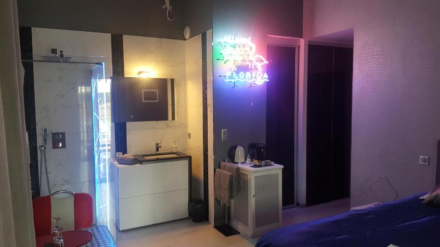The interior of the rooms, with their exotic and refined decoration, offers all the modern comfort necessary for a pleasant stay. You will find an 82 cm LCD TV, a minibar, a coffee machine, a microwave, and a refrigerator. The rooms are also equipped with a walk-in shower and free high-speed Wi-Fi connection. Some rooms offer breathtaking views of the golf course, while others overlook a peaceful garden.